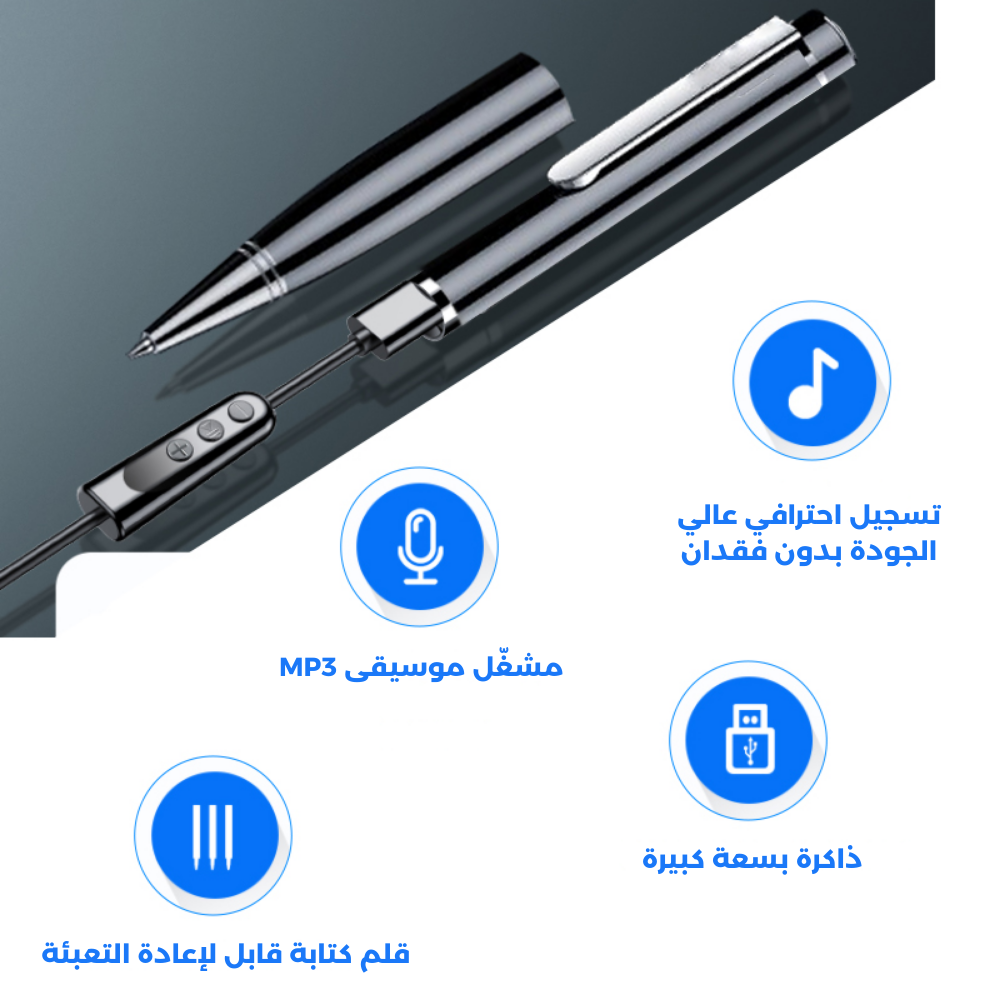في عالم سريع الإيقاع حيث تكثر الاجتماعات، المحاضرات، والدروس، يصبح امتلاك أداة عملية تجمع بين الكتابة الكلاسيكية والتكنولوجيا الحديثة أمرًا لا غنى عنه. 🖊️ هذا القلم الذكي ليس مجرد قلم عادي للكتابة، بل هو مسجل صوت احترافي، مشغل موسيقى MP3، وذاكرة متنقلة بسعة كبيرة، كل ذلك في تصميم أنيق وفاخر يشبه القلم التقليدي تمامًا.